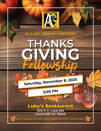 Join us for a special time of gratitude, fellowship, and connection at the Stepping Into Destiny Artists Guild Thanksgiving Fellowship on Saturday, November 8, 2025, at 2:00 PM, hosted at Luby’s Restaurant.